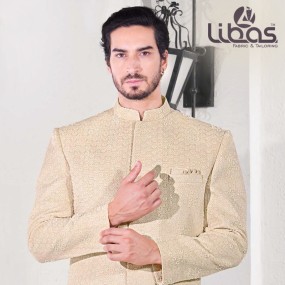 LUXURIOUS GOLDEN BEIGE 2 PCS JODHPURI SUIT WITH TROUSER