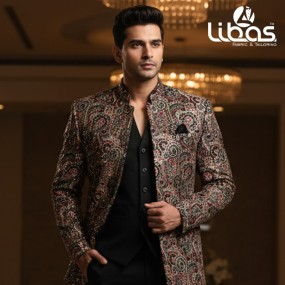 BLACK VELVET DESIGN 3PCS JODHPURI SUIT WITH KOTI AND TR...