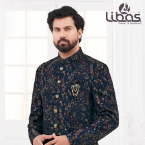 ELEGANT SEA GREEN BROCADE JODHPURI SUIT FOR MEN