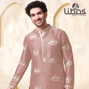 IVORY GRACE TAUPE GREY EMBROIDERED MEN KURTA SET