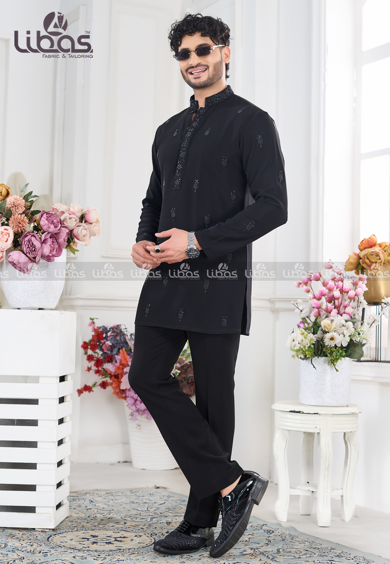 BLACK KURTA SET PAIRED WITH KOTI (N...