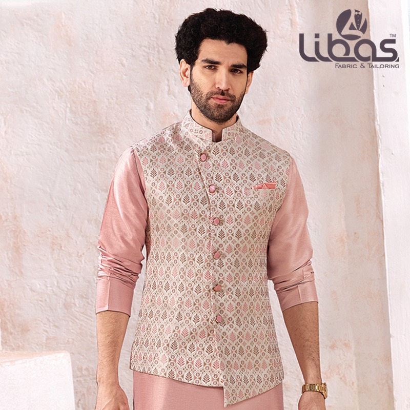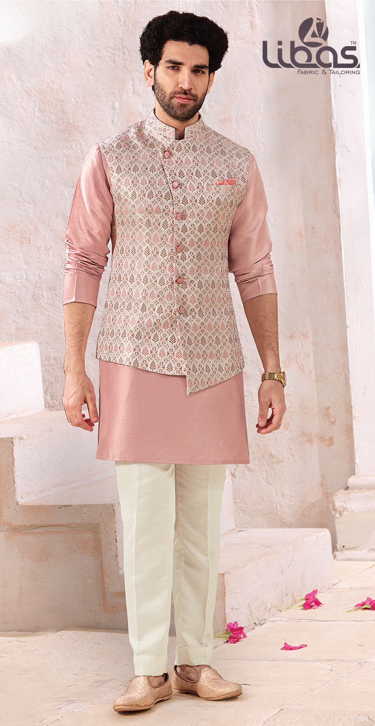 CREAM COLOR SILK SHERWANI WITH PINK...