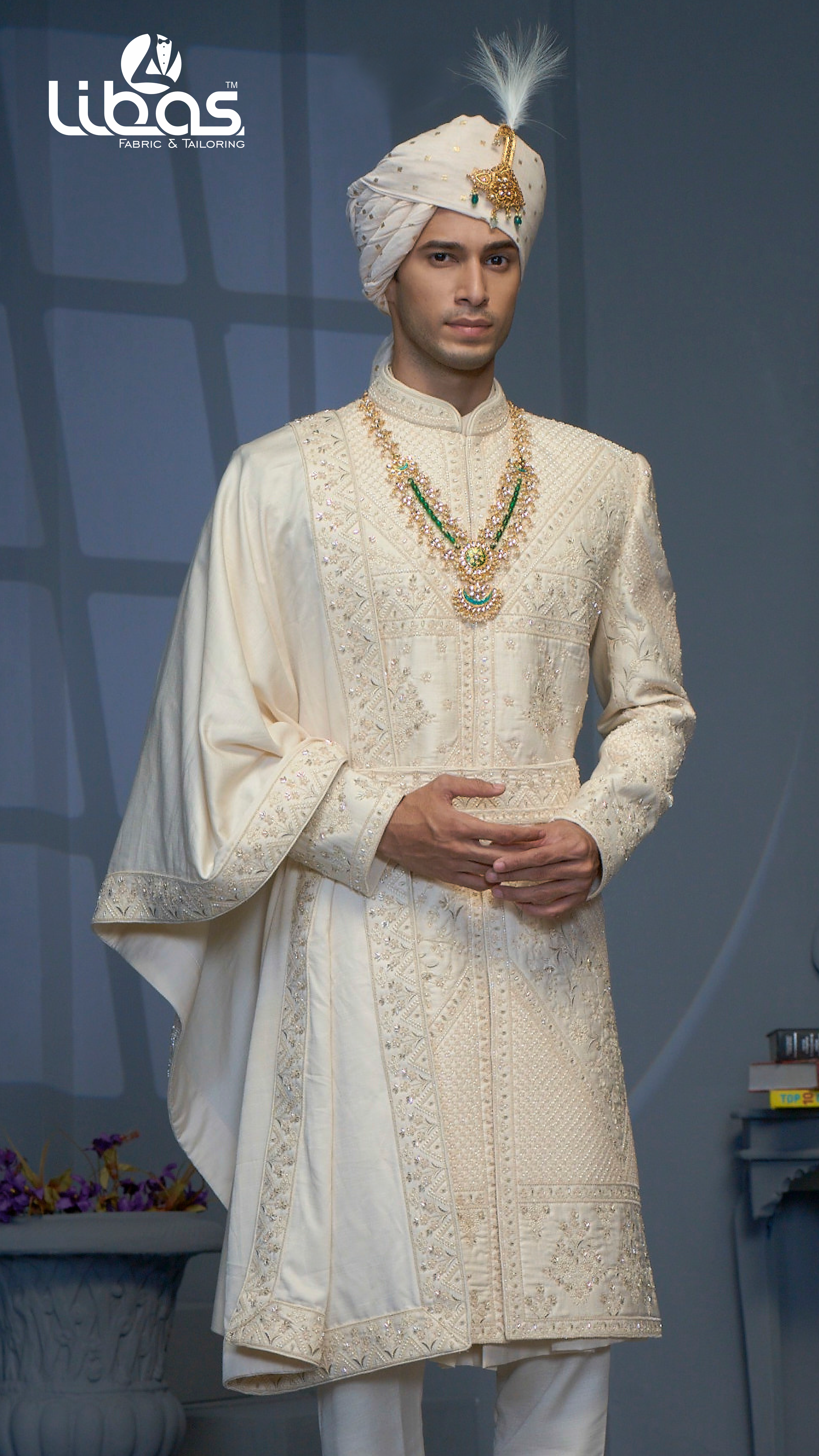 IVORY COLOR SHERWANI WITH HEAVY EMB...