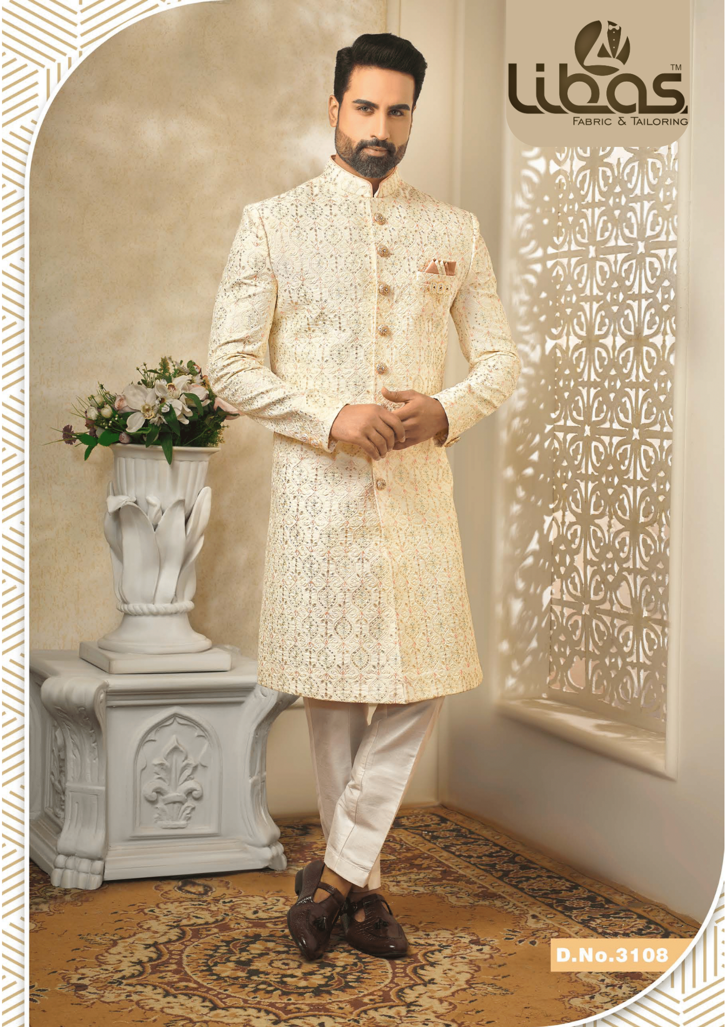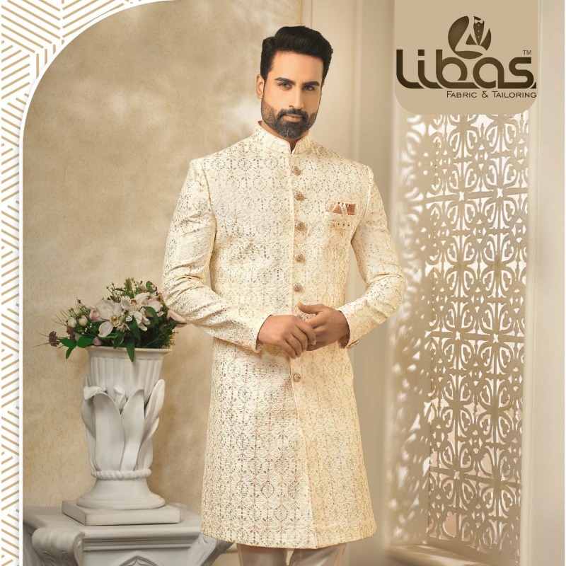 PREMIUM IVORY COLOR SHERWANI WITH G...