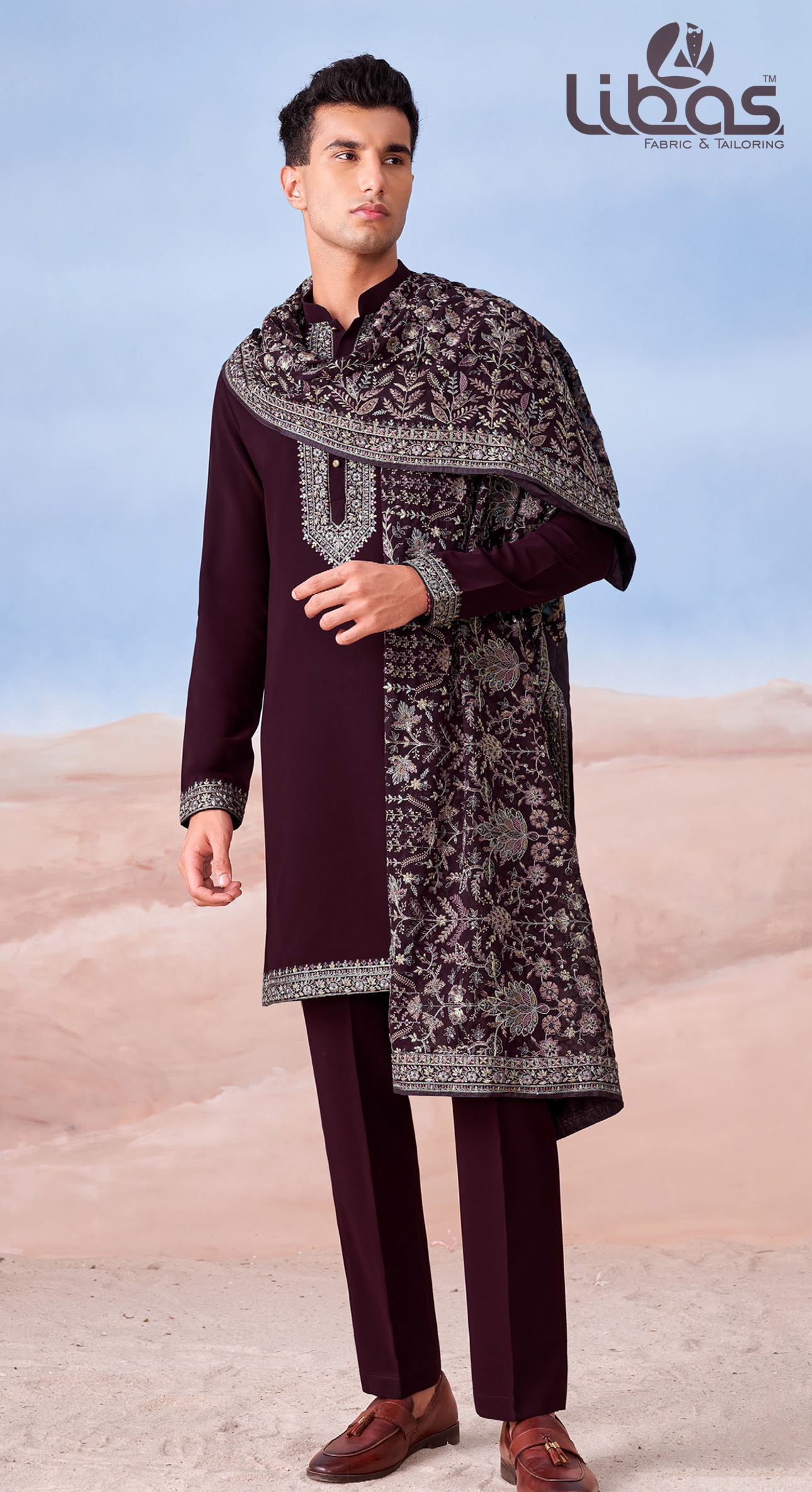 DEEP MAROON KURTA SET WITH EMBROIDED SHAWL