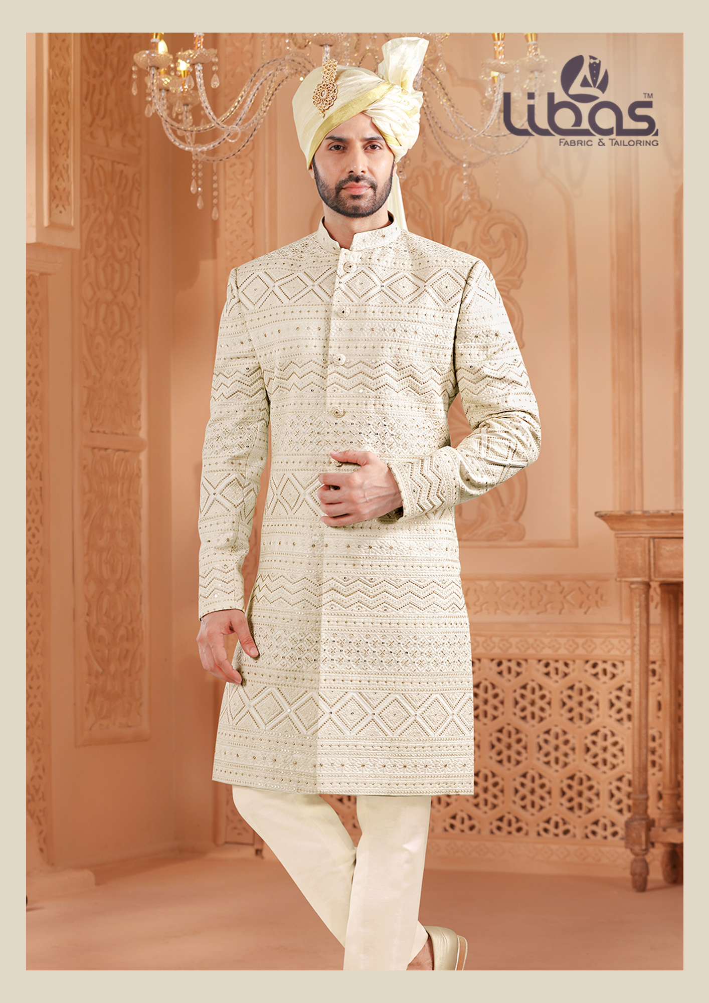 COLLECTION: TRADITIONAL WEDDING SHERWANI WITH TURBAN