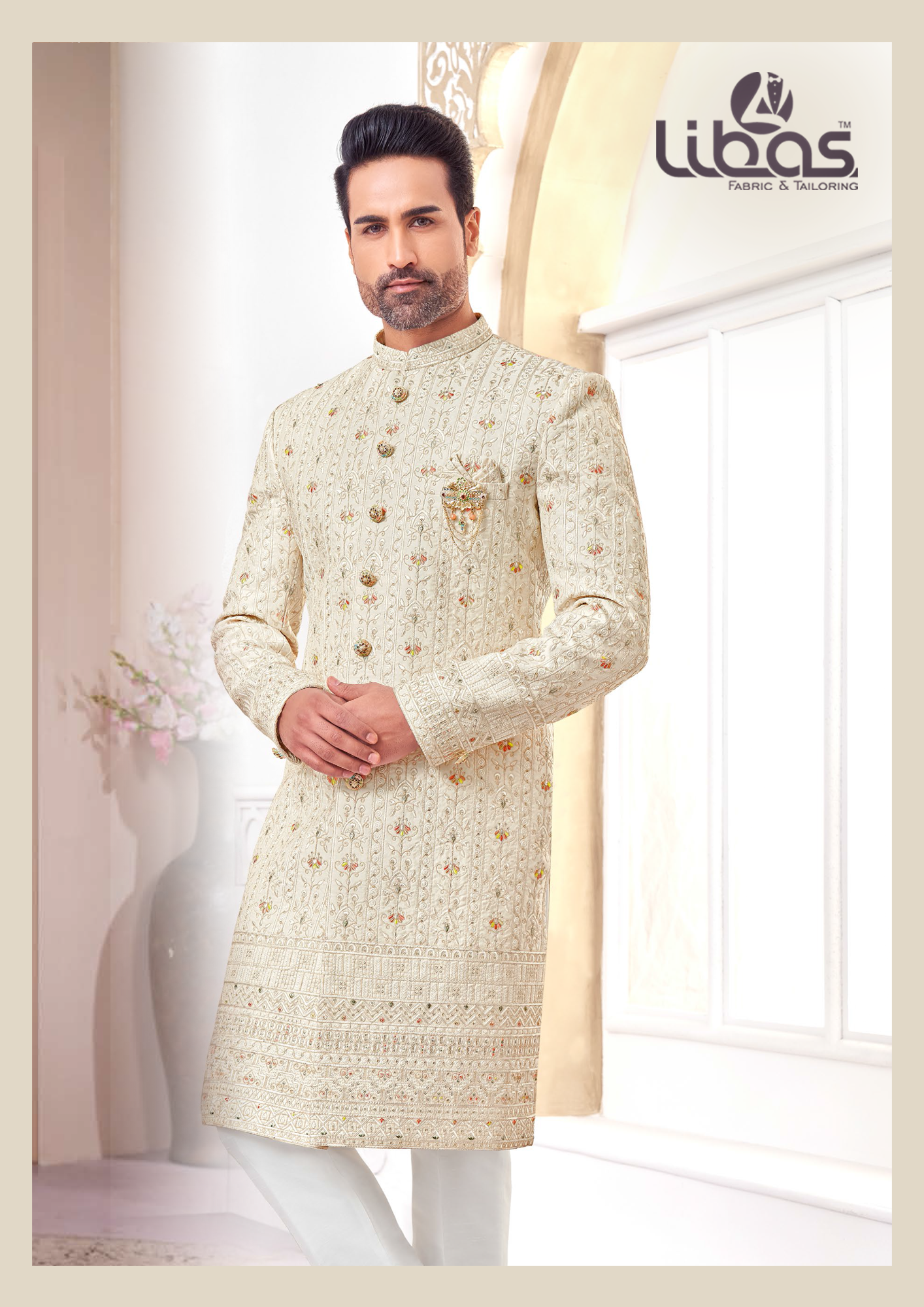 LIGHT CREAM JODHPURI WITH MATCH LIG...
