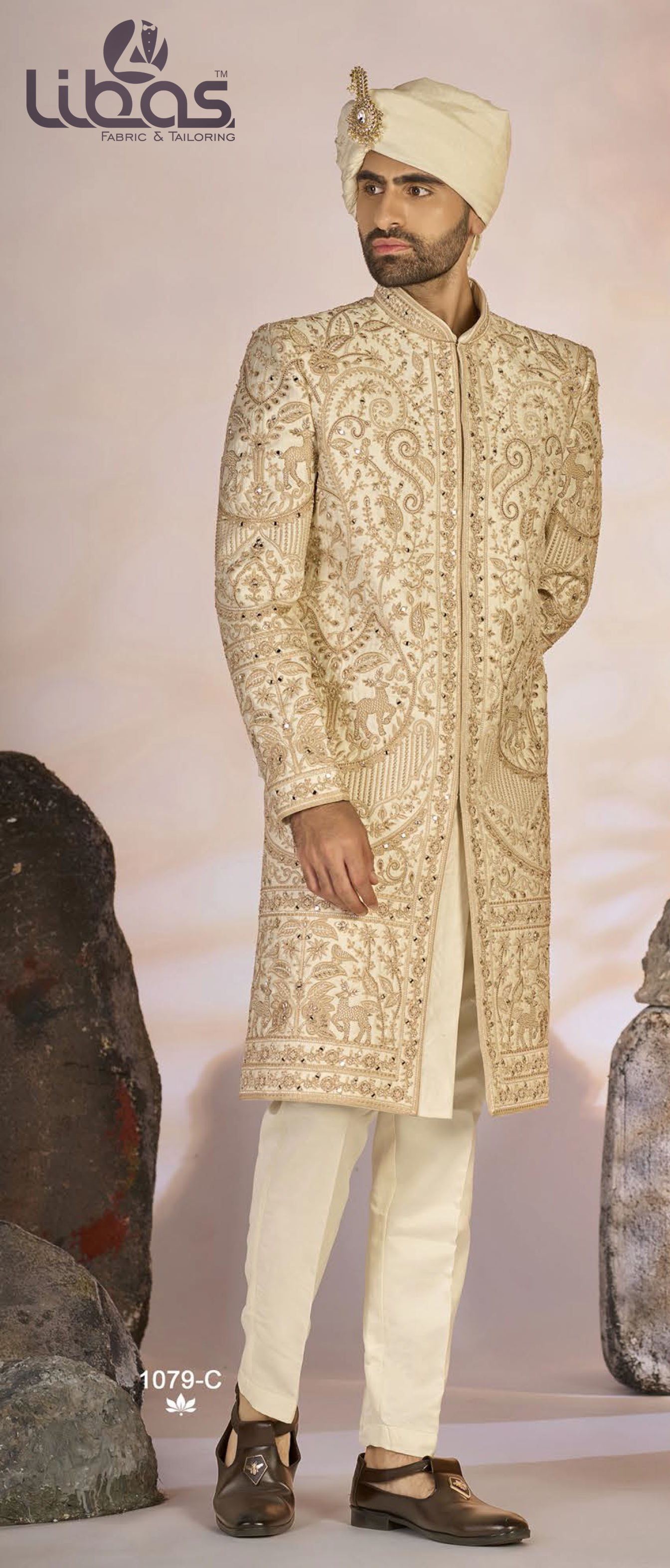 PREMIUM IVORY COLOR SHERWANI WITH M...