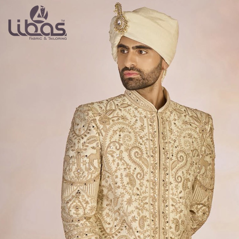IVROY GOLD SHERWANI WITH INTRICATE ...