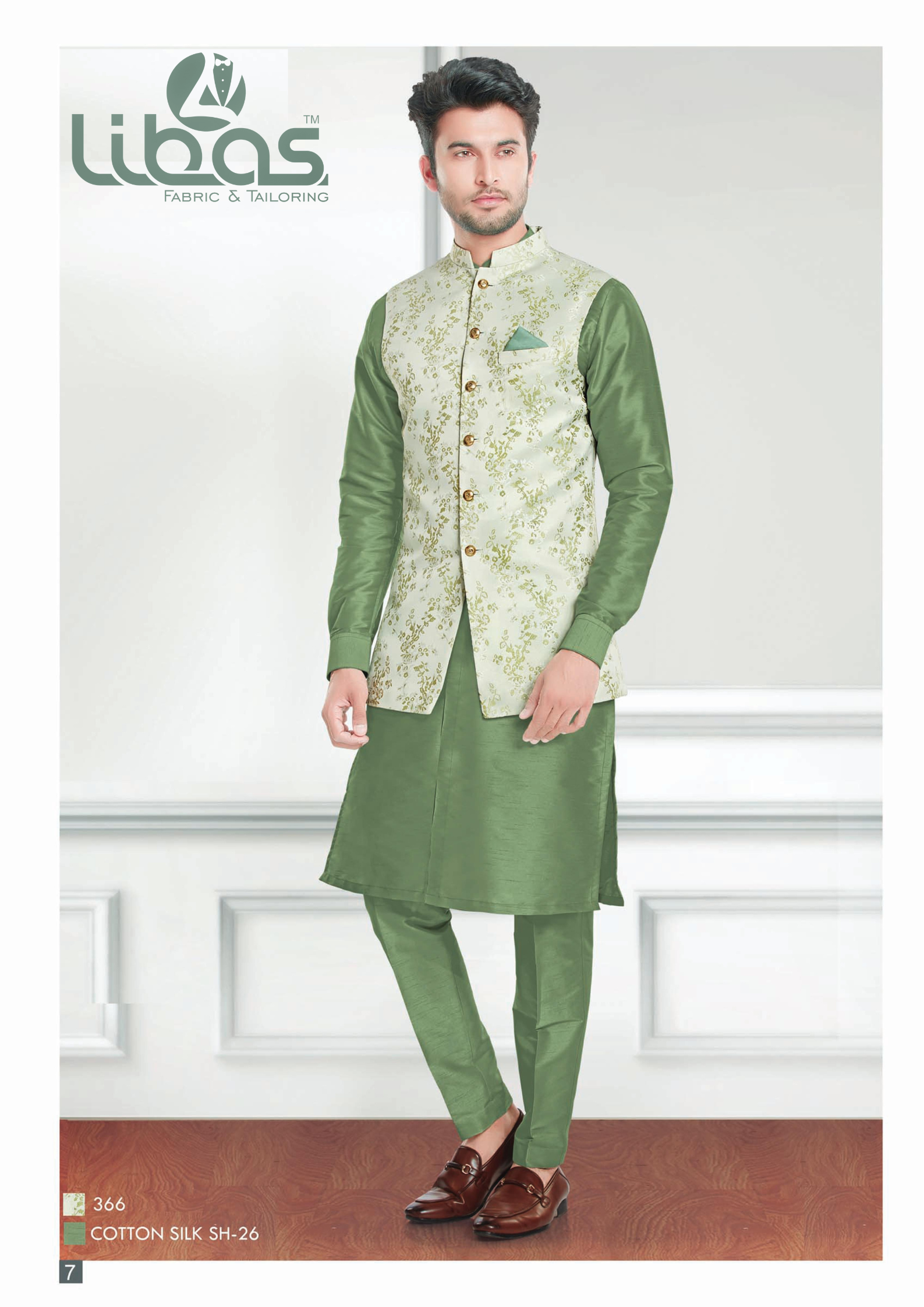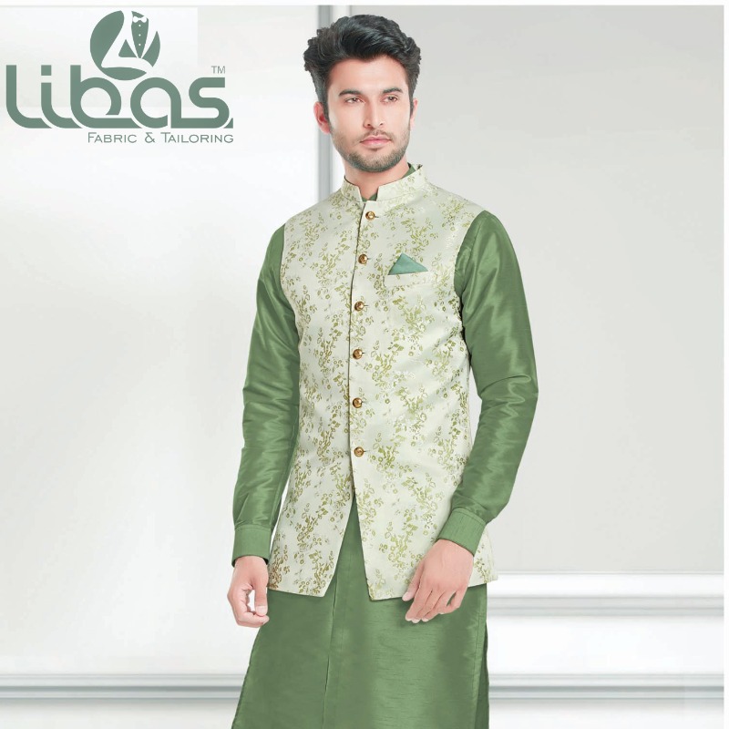 COLOR : LEMON COLOR DESIGNING KOTI WITH DARK OLIVE GREEN KURTA PAJAMA