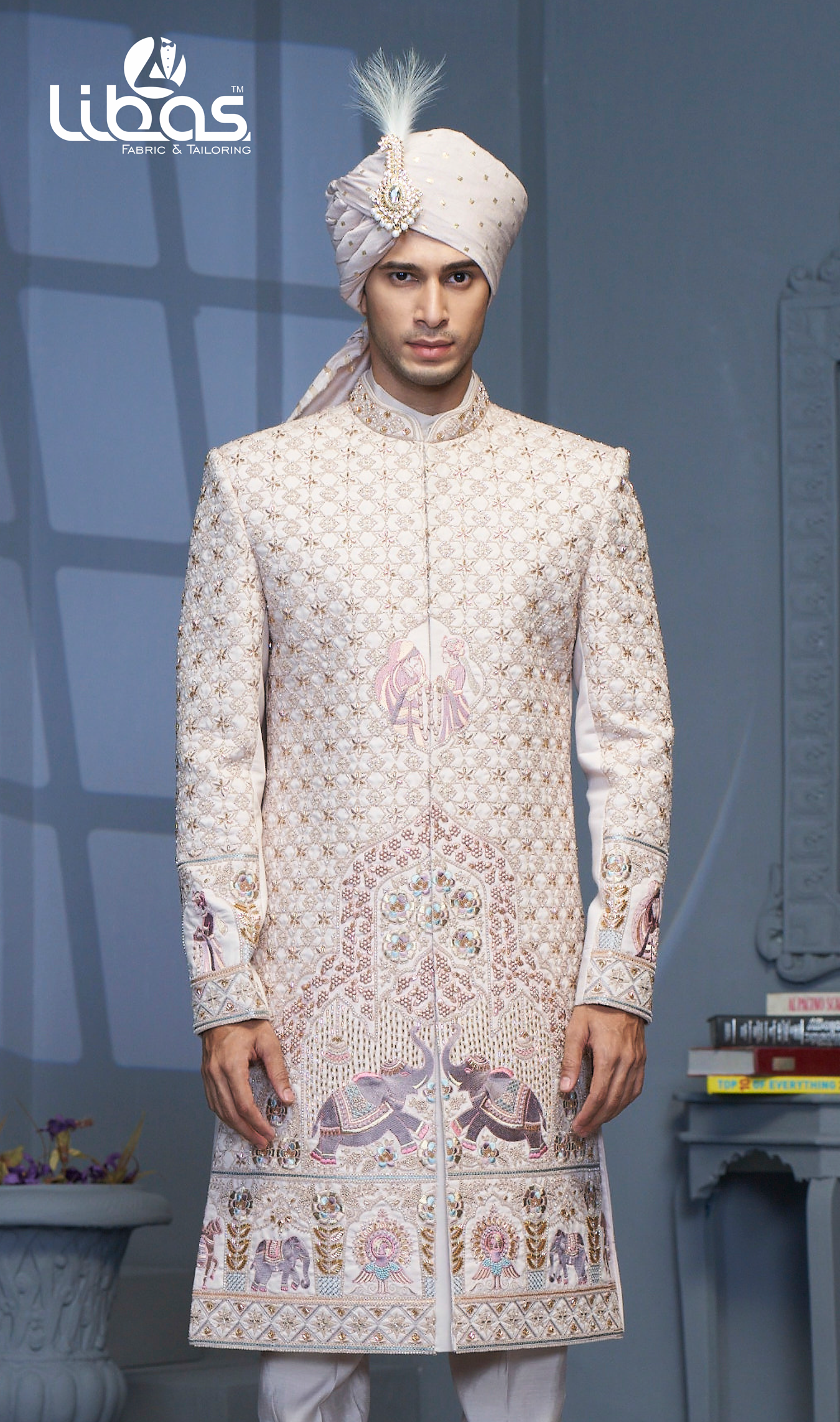 LIGHT CREAM JODHPURI WITH MATCH LIG...
