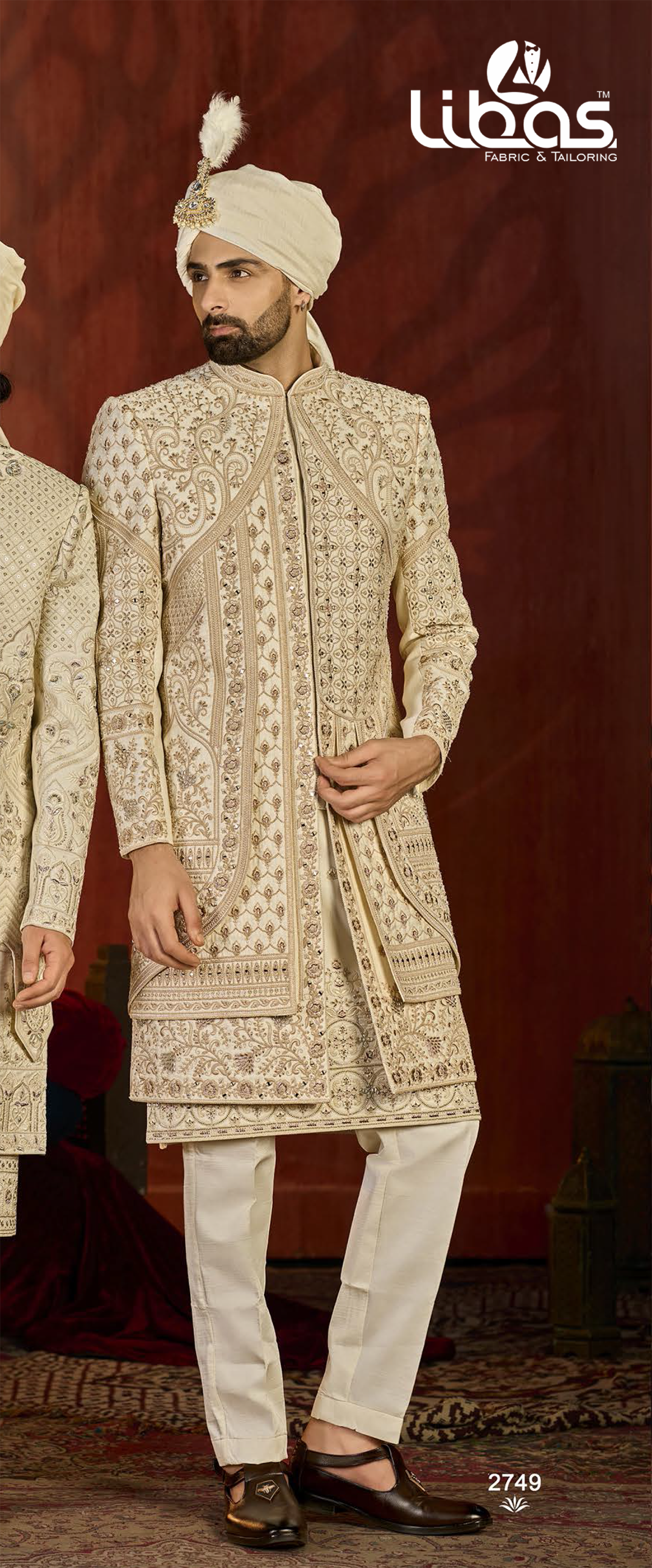 CREAM INDO-WESTERN SHERWANI WITH LI...