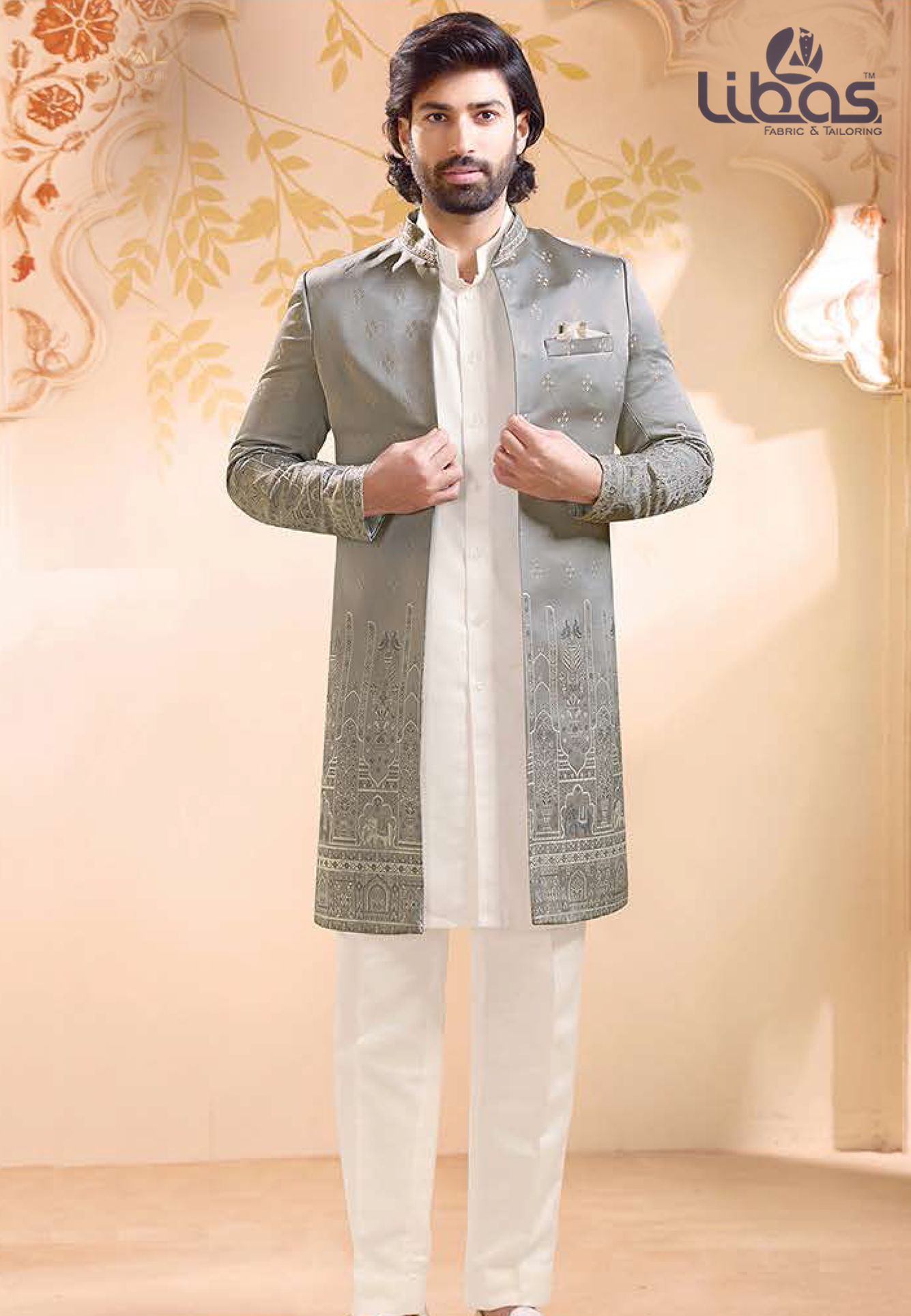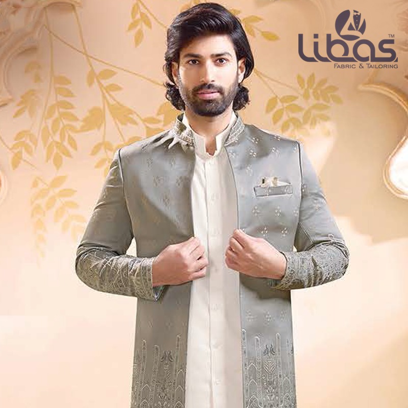 PALEGREEN CREAM WORK SHERWANI WITH ...