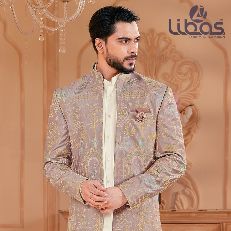 ROSY BROWN 3PCS INDO WESTERN SUIT WITH KURTA AND PAJAMA