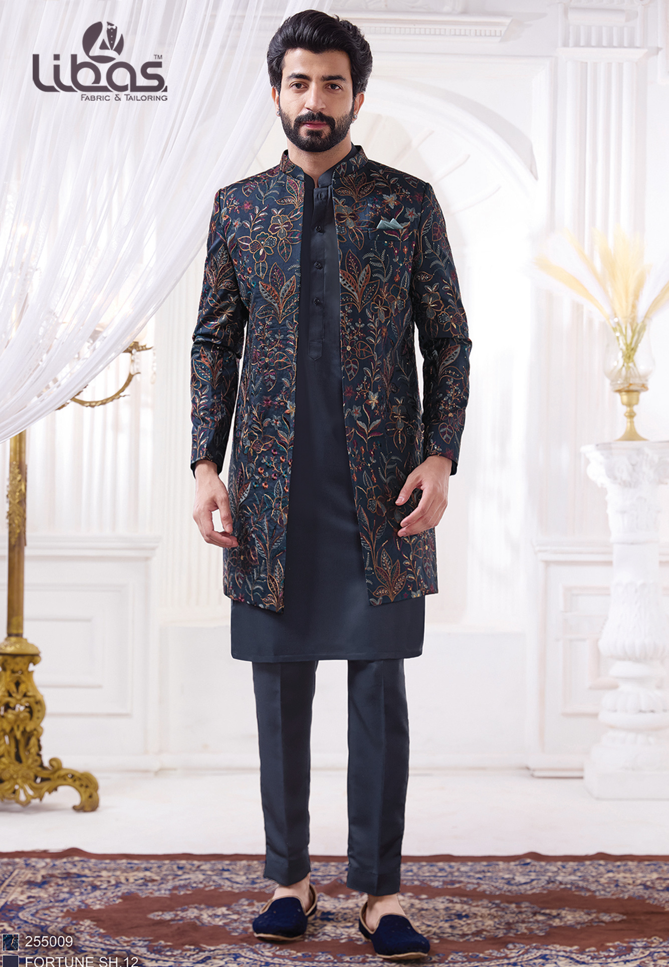 - Color : Midnight blue with multi-coloured metallic thread work