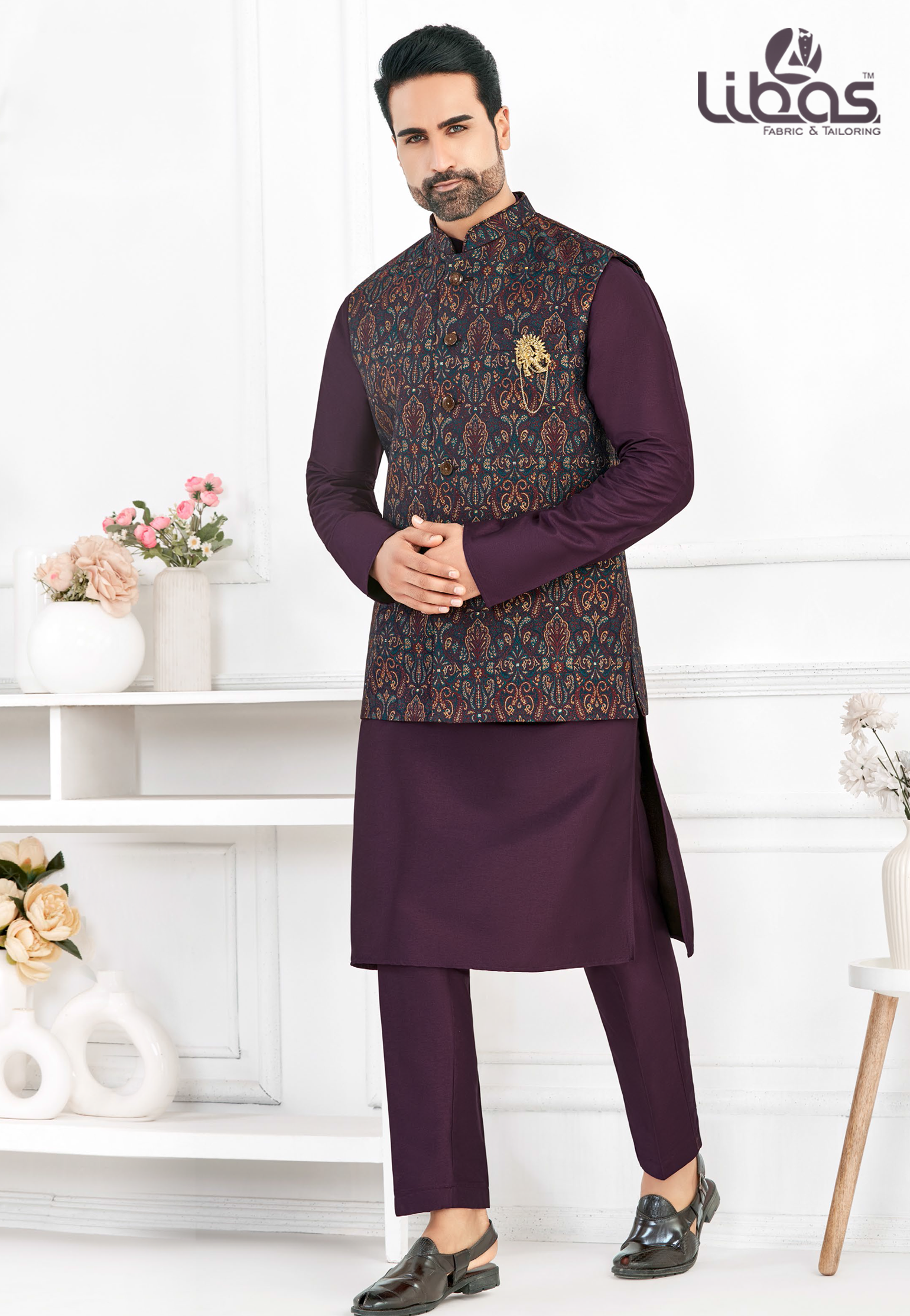 DEEP PLUM 2 PIECE SHERWANI SET WITH...