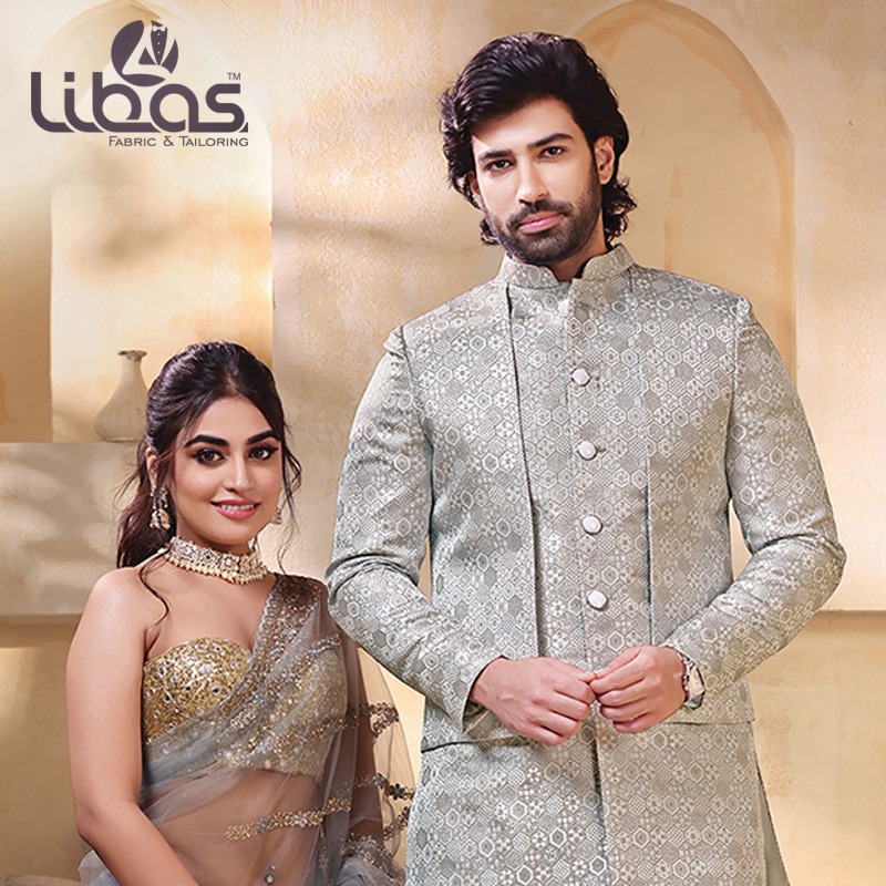 FLORAL EMBROIDERY SHERWANI WITH PAJ...