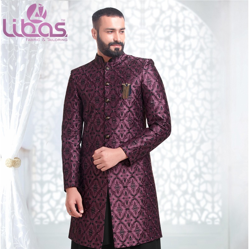 COLOR :WINE COLOR BUTTA WORK DESIGN INDO WESTERN
